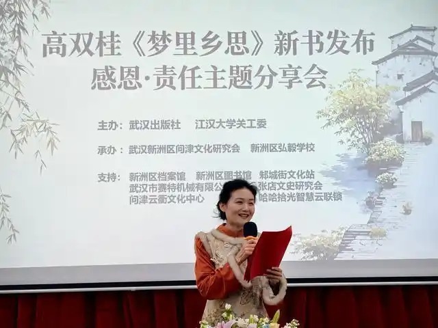 活动举办方相关负责人在致辞中表示,策划组织此次分享会,既是对本土作家创作成果的肯定,也是推动全民阅读、建设文化强区的生动实践。《梦里乡思》以“感恩、责任、乡情”为内核,引导大众在阅读中感悟生活、铭记初心、传递温暖,以小视角呈现大时代,以小家情映照家国怀,为新洲文化传承注入新的精神力量。
