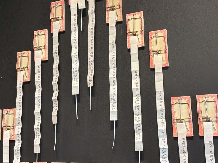 200多张印着名人语录的纸条如同老鼠尾巴,被捕鼠器“捕获”,对此,张兰生表示,“即使是有益的名言,我们也要反思,这句话是否适用于我现在的生活。因此,不要盲目追随,要保持独立思考的能力,这是我想传达的。”