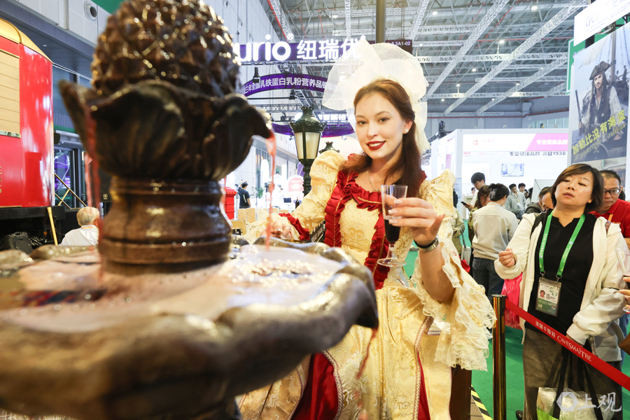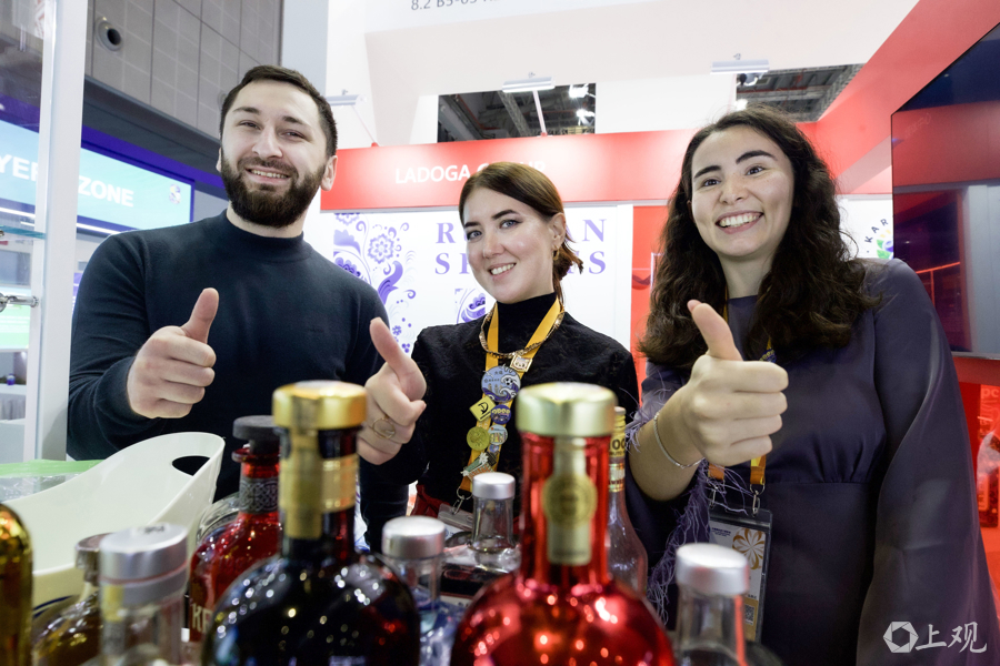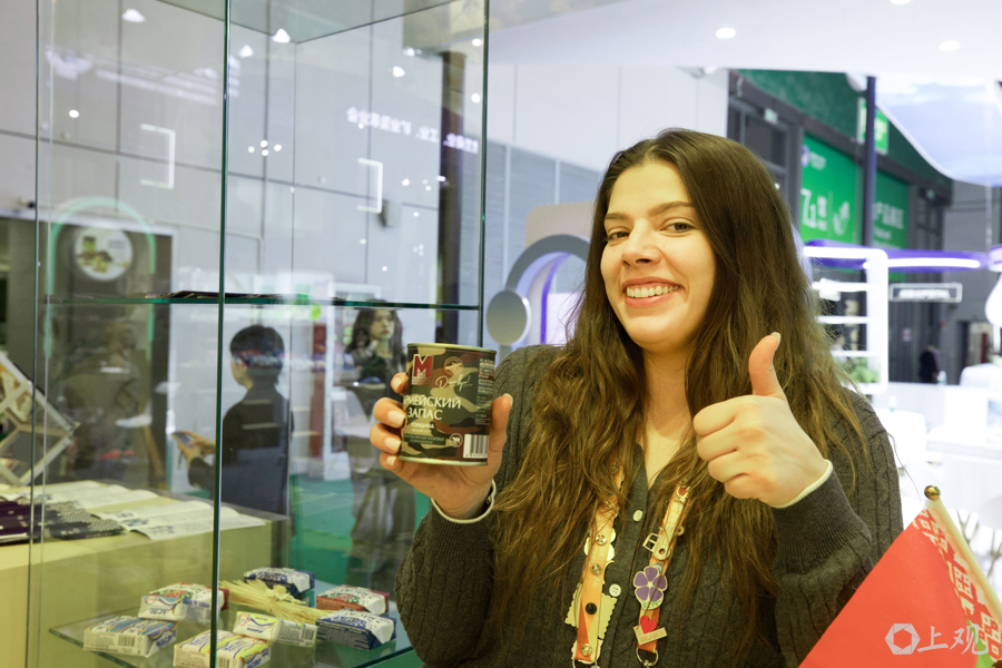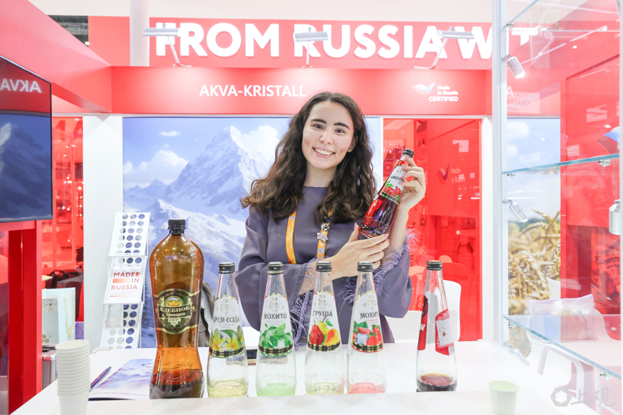 俄罗斯留学生维卡说:“我在华东师范大学读中文研究生,今年进博会我的气泡水卖的特别好,明年一定再来。”