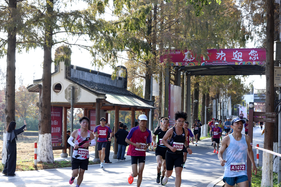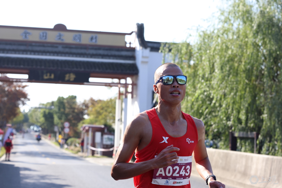 清晨的浙沪边界薄雾朦胧,选手们从平湖市广陈镇农业经济开发区党群服务中心出发,沿朱平公路、龙山公路、山塘中心路、漕廊公路一路驰骋,途中经过百年古街、广袤稻田、自然村落和现代农业设施基地,在竞技的同时尽享柔美恬静且科技范儿满满的江南田园新丽景。来自上海的跑者王先生感慨道:“跑一次马拉松,跨越两个省市,沿途尽是田园风光,这种体验独一无二。”
