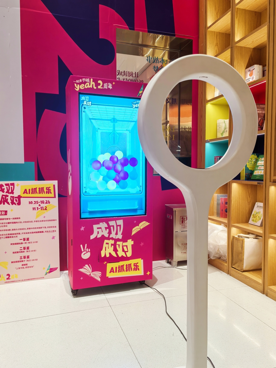 2024年“新·上海书城周年庆”,上海书城一楼曾推出一款读者留言墙,很快写满了市民读者对书城的祝福。时隔一年,它将升级为“我的超‘yeah’瞬间”主题留言墙。10月25日、26日,11月1日、2日,读者可以通过留言墙边的AI画像机,绘制属于自己和书城的AI自画像。同期在上海书城2楼还将开展“成双成对”AI抓抓乐活动,读者凭当日购书小票,即可免费体验。抓取成功的读者有机会获得上海书城两周年精美礼品,包括每日限量10份的《繁花》联名产品“阿宝&囡囡玩偶”等。