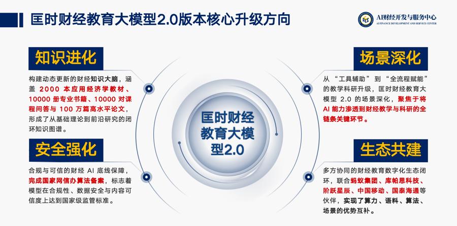 上海财经大学昨日发布“匡时财经教育大模型2.0”等一系列人工智能与财经教育深度融合探索成果。该模型构建了一个可持续更新的财经“知识大脑”,涵盖2000+应用经济学教材、10000+专业书籍、10000+课程问答对与100万+篇高水平论文,形成闭环知识体系。
