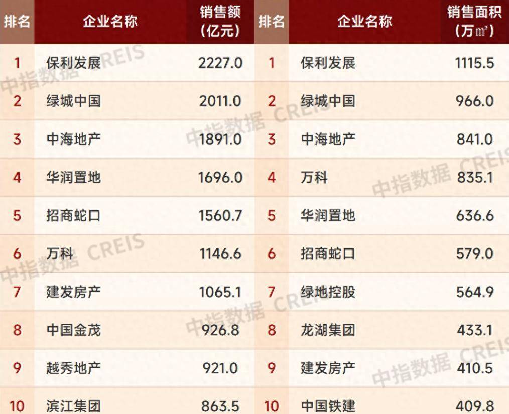 而根据克而瑞研究中心的排名,保利发展、中海地产、华润置地位居前三,绿城中国以1204亿元排名第五位,这是因为在中指研究院的排行榜中,将绿城中国的代建金额也计入其全口径销售额,导致了两家机构排名的差异。